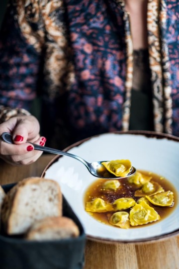 Strong beef broth with cappeletti filled with beef oxtail, baked overnight for more than twelve hours.