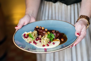 We also invite you to taste the delicious neck of lamb with chickpea purée, smoked aubergine, pomegranate and tarragon.