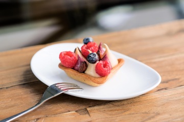 For the full-flavor of strawberries you can enjoy Fragolosa. Next to strawberry chocolate Valrhona we put strawberry confit, almond and white chocolate cream, and mascarpone with piquant basil. Another fruity delight is the Tartaletta di fruti di bosco. We take crispy almond pastry cups and fill them with fine forest fruit cream and strawberry chocolate Inspiration Strawberry Valhrona. All decorated with fresh forest fruit.