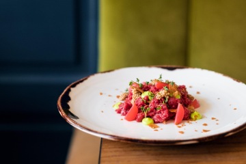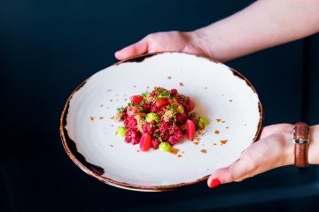 Z předkrmů vám doporučíme hovězí tatarák s marinovanou zeleninou, majonézou z hrášku a bramborovým chipsem či rozebranou panzanellu s grilovanými sardinkami, salsou verde, marinovanými okurkami. Chléb na panzanellu děláme v X – oven a díky tomu je hezky cítit kouřem, je to velmi příjemná kombinace chutí.