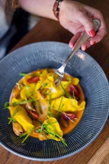 I kategorie pasty a risotta prošla celkovou proměnou, ochutnejte ravioli plněné ricottou s omáčkou z mušlí a concasse z rajčat a risotto se zeleným chřestem, treskou a mořskými řasami s opravdu intenzivní chutí chřestu. Další novinkou jsou fusilli s šťavnatým králičím ragú, oreganem a králičími játry.