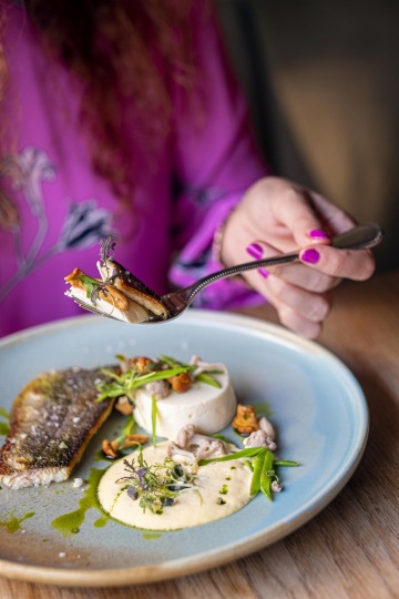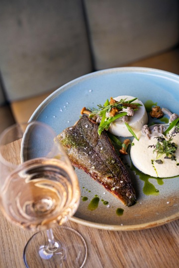 Pstruh s bernskou omáčkou, hráškem a květákový flan, tak k tomuto chodu bychom vám řekli jediné, že rybu v tak krásném provedení si nemůžete nechat ujít.