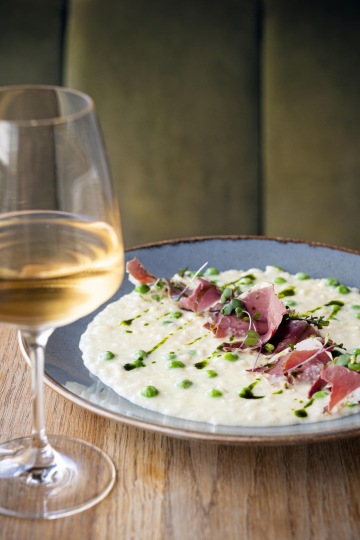Co na nás v novém menu hodně příjemně připravilo je kedlubnové risotto, které vaříme ve freshi z kedlubny, nahoru přijde hrášek, pastrami z hovězího srdce a petrželový olej.
