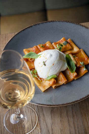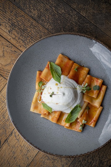 Klasická italská pasta, jejíž základem jsou čerstvá kvalitní rajčata, to jsou paccheri s pečenými rajčaty, zázvorem a pěnou ze sýru stracciatella. Chod, který uspokojí všechny i vegetariány.